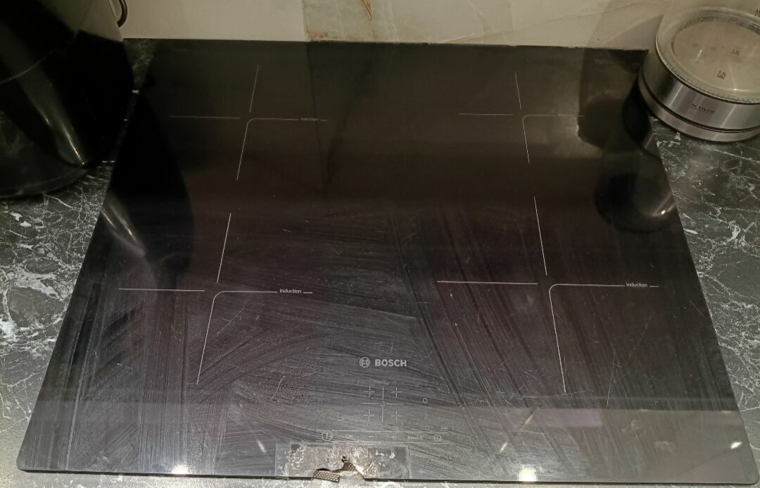 Płyta indukcyjna Bosch z pęknięciem, w pełni sprawna, wszystkie funkcje działają.Może komuś przyda się na części.